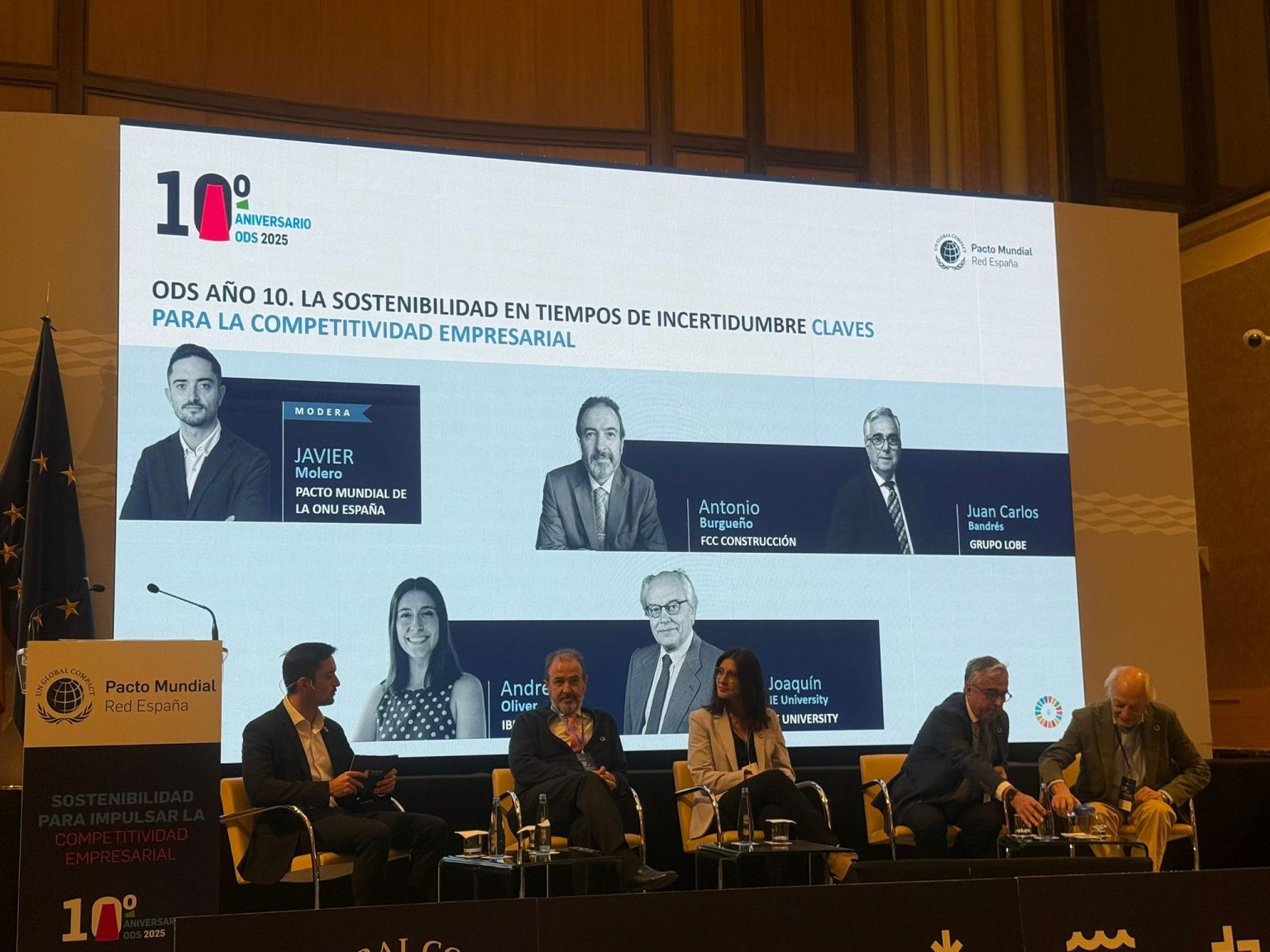 El acto, que ha contado con la participación de Clara Arpa, presidenta del Pacto Mundial de la ONU España, un representante del Gobierno de Aragón y la directora ejecutiva del Pacto Mundial, Cristina Sánchez, ha reunido a referentes del ámbito académico y empresarial como Joaquín Garralda (IE University), Antonio Burgueño (FCC Construcción), Andrea Oliver (Iberostar) y Juan Carlos Bandrés (Grupo Lobe). El programa ha incluido la adhesión de CEOs aragoneses, la presentación del informe “ODS Año 10: La sostenibilidad en tiempos de incertidumbre”, así como espacios de diálogo y networking que han puesto en valor cómo la sostenibilidad se ha consolidado como una oportunidad de negocio y un motor de competitividad.